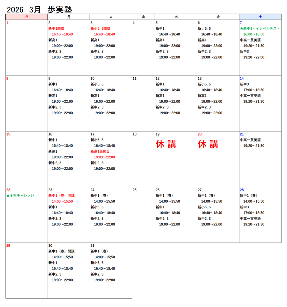 ※上記日程が難しい場合は、新中1春期講座をご受講ください。同内容になります。